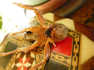 my first encounter with one was about five years ago. it was slowly crawling weary, weirdly, accross the sidewalk. i was stoned or something i think and i truly thought i was witnessing the spawn of an alien creature searching for its first victim. it was not gonna be me!!! i walked away and i never walk away! its pale armour and glazed over eyes. the large head and spiked appendages! no thanks.